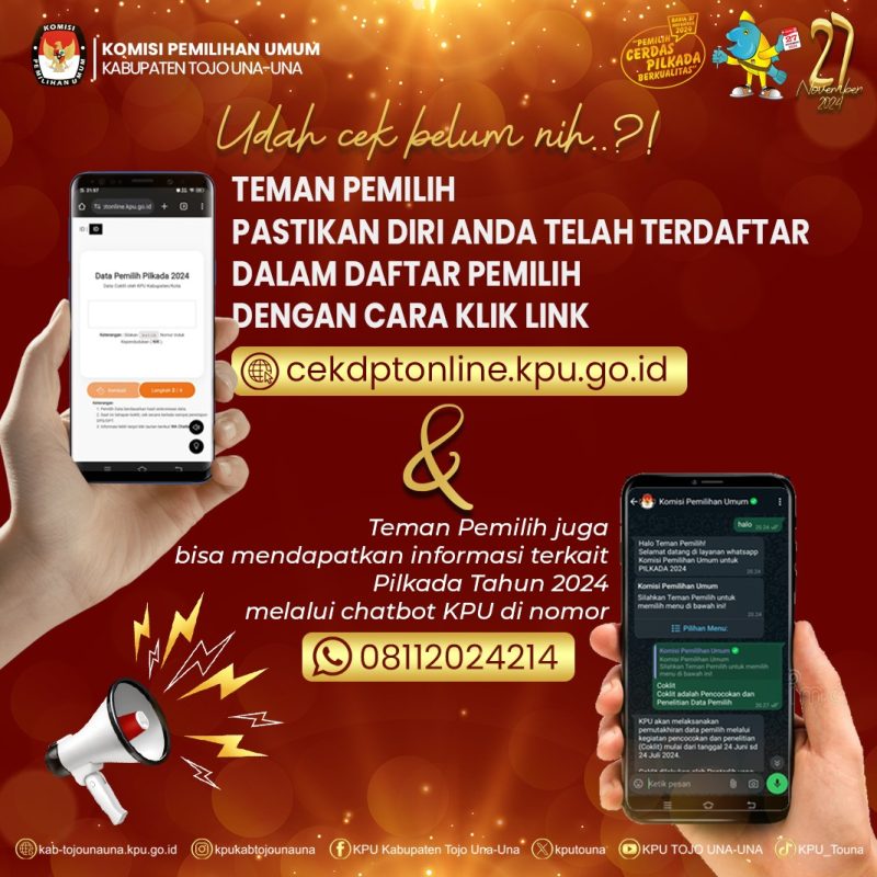 Pilkada Touna Didepan Mata, Pastikan Anda Sudah Terdaftar Sebagai Pemilih. KPU Buka Layanan Cek DPT Online