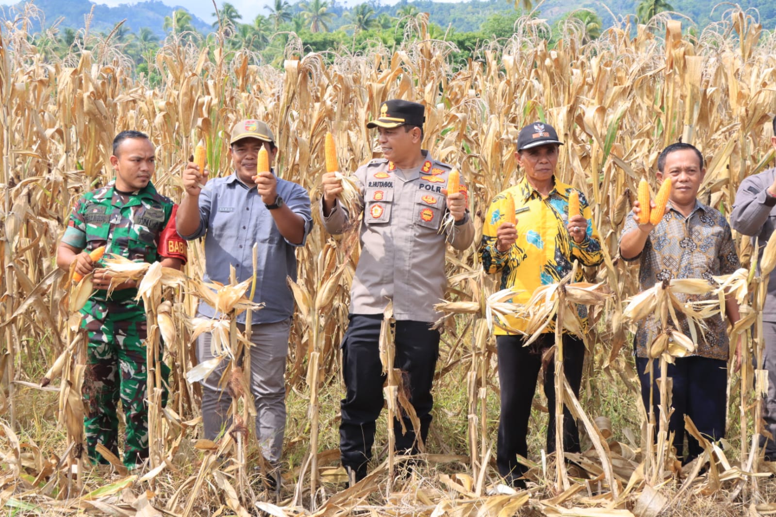 Ampana – Kepolisian Resor Tojo Una-Una menggelar Panen Raya Jagung Di Desa Sabulira Toba, Kecamatan Ratolindo, Tojo Una-Una, Sulawesi Tengah.